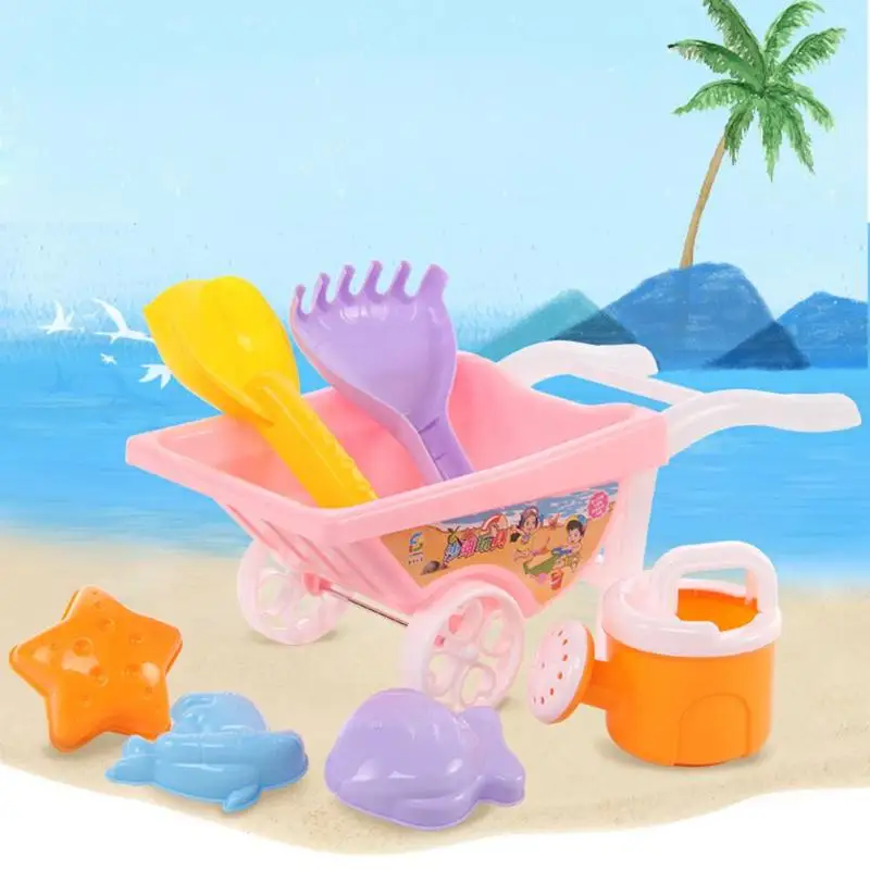 Best Beach Toy Trolley 7pcs of Net Bag Child Summer Beach Play Sand Water Tools Kids Water Fun Playing O