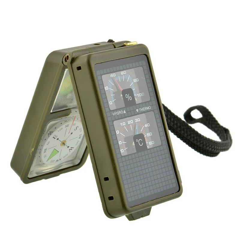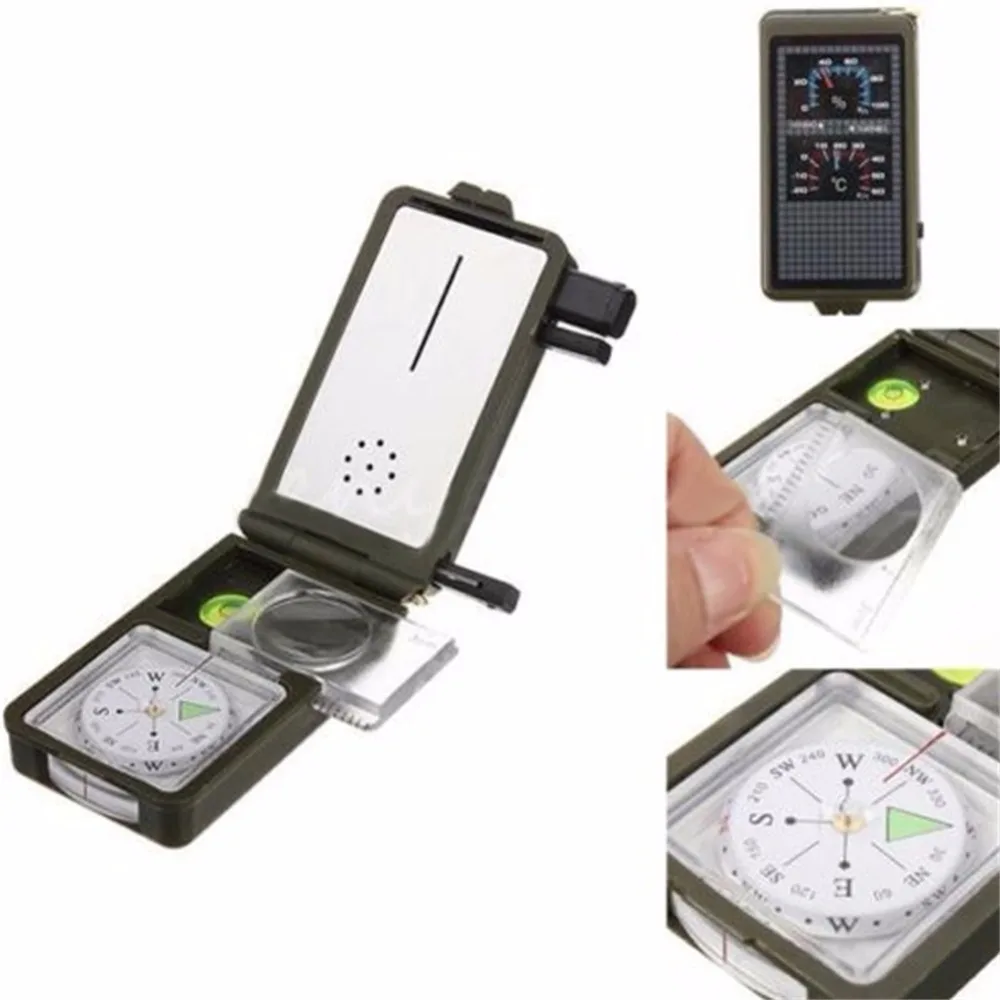 HOT Sale Multifunction 10 in 1 Portable Military Compass Magnifier LED Light Whistle Outdoor Sports Camping